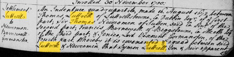https://www.virtualtreasury.ie/item/NAI-Lodge-5-308 Grant to SYMON LUTTRELL of land in Dublin ReferenceCode NAI Lodge/5/308 GL access 250708